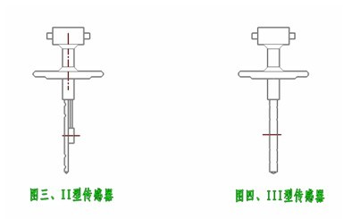 3.2.1、Ⅰ型,適用于(20~50)㎜的管道,外形如圖2所示。其檢測桿直徑一般為4.5~6.5㎜,傳感器與管道的連接方式有兩種:一種是螺紋連接,另一種是法蘭連接。用于高壓測量時都采用法蘭連接,如下圖所示