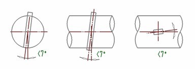 其他類型的傳感器是將其檢測桿插入工藝管道中,安裝時除了總壓孔應正對流速方向外,必須保證傳感器檢測桿與工藝管道的軸線垂直,其允許的位置角壓偏差如圖五所示。