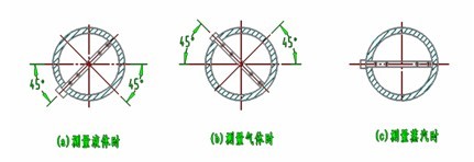 對于垂直管道傳感器可安裝在管道水平面沿管道圓周360的任何位置上,高低壓引壓管應處于同一平面上,由圖六(a)所示;當測量液體時,應向下側(cè)傾斜安裝如圖六(b)所示;當測量氣體的蒸氣時應向上傾斜安裝如圖六(c)所