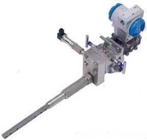 這類傳感器適用于管道直徑DN大于等于1000㎜,壓力20MPa以上的測量,由于流速增大,作用于檢測桿上的流體