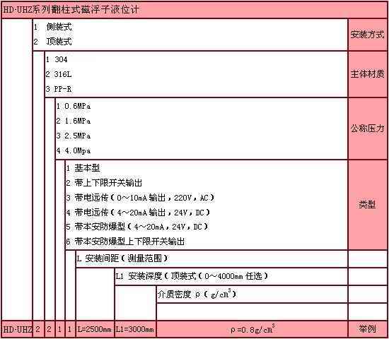 HD-UHZ磁翻板液位計是根據(jù)國內(nèi)外同類產(chǎn)品加以消化提高且按照原化工部頒布的磁性液位計標準HG/T21584-95研制生產(chǎn)的產(chǎn)品。該儀表可用于各種塔、罐、槽、球型容器和鍋爐等設(shè)備的介質(zhì)液位檢測。適用于低溫到高溫,真空到高壓等各種環(huán)境,是石油、化工等工業(yè)部門的理想液位測量產(chǎn)品。根據(jù)在容器中安裝位置的不同,提供側(cè)裝和頂裝兩種形式。根據(jù)工作介質(zhì)不同,提供不銹鋼和ABS、PP-R工程塑料三種材質(zhì),其中ABS、PP-R材質(zhì)適用于酸、堿等腐蝕性介質(zhì)。
