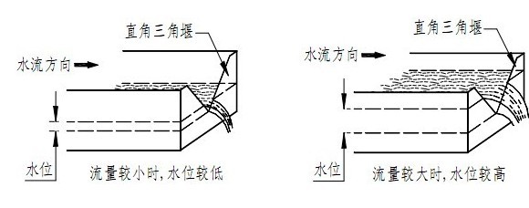 直角三角堰和矩形堰也有相應(yīng)的公式。但是還與按裝的渠道尺寸有關(guān)。確定水位-流量關(guān)系時,三角堰與渠道寬B、開口角度、上游堰坎高度p有關(guān);矩形堰與渠道寬B、開口寬b、上游堰坎高度p有關(guān)。