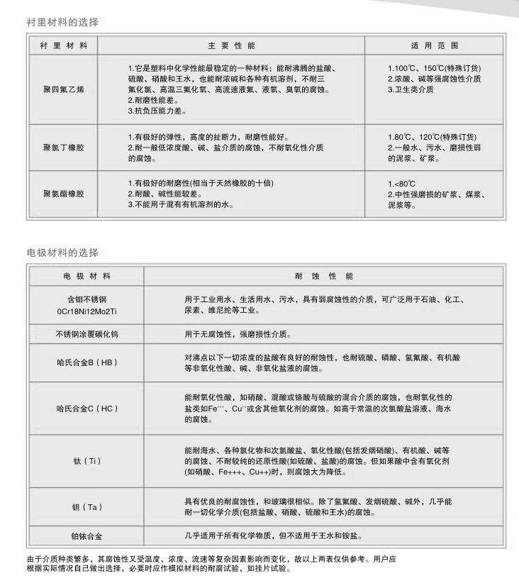 2、襯里根據(jù)客戶的不同要求,可以選用聚氯丁橡膠、聚四氟乙烯、聚全氟乙烯F46等