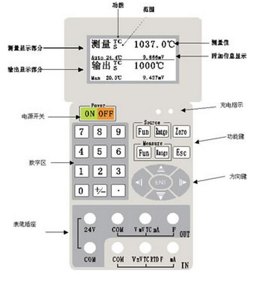 當(dāng)電池電量耗盡的時(shí)候(屏幕閃動(dòng)或者按開(kāi)機(jī)鍵無(wú)法開(kāi)機(jī)),把充電器由此口插入進(jìn)行充電,充電時(shí)候可同時(shí)進(jìn)行測(cè)量或者輸出,