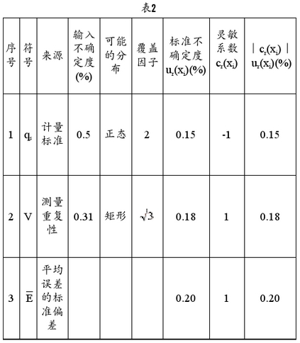 電磁流量計(jì)的不確定度分析一覽表如表2所示。