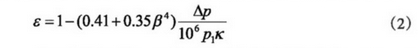 當(dāng)所測天然氣流經(jīng)孔板時,由于流速和壓力的改變而伴隨著密度的改變(氣體壓力從p1降為p2,因膨脹而使密度減小),為適應(yīng)此種變化以修正因假設(shè)密度等于常量而對流量引起的偏差,因此必須加入一個系數(shù),這個系數(shù)被稱為可膨脹系數(shù)e。