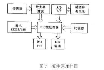 智能信號處理器的硬件原理如圖7所示,其核心部件為美國某公司的PIC單片機(jī),其內(nèi)部集成了ROM、RAM、定時器、數(shù)據(jù)采集器、看門狗電路、上電復(fù)位電路,可節(jié)省大量外圍電路。