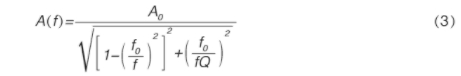 渦街流量計設(shè)計采用由具有1/f²衰減(-40dB/dec)特性的低頻濾波器和二階高通濾波器(40dB/dec)組成的帶通濾波器來對原始信號的幅頻特性進(jìn)行處理。該濾波器的幅頻特性為: