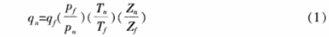 式中:qn、qƒ----標(biāo)準(zhǔn)參比條件、工況條件下的體積流量:qn、pƒ----標(biāo)準(zhǔn)參比條件、工況條件下的絕對(duì)靜壓力;Tn、Tƒ----標(biāo)準(zhǔn)參比條件.工況條件下的熱力學(xué)溫度;Zn、Zƒ標(biāo)準(zhǔn)參比條件.工況條件下的壓縮因子。標(biāo)準(zhǔn)參比條件下的累計(jì)氣量Qn為