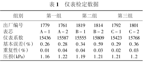 按照規(guī)定,渦輪流量計出廠前總是逐臺進行標定,并給出儀表系數(shù)。但在現(xiàn)場,尤其是高壓場合,渦輪表損壞的事時有發(fā)生,維修人員經(jīng)常將表芯(包括葉輪和軸承在內的組件)更換,而不是整臺儀表更換,換下的表芯帶回維修(在現(xiàn)場不允許進行長時間的維修工作)。由此產(chǎn)生了這樣的疑問:整臺儀表更換與只更換表芯在流量計的性能方面,尤其是儀表系數(shù)會有什么變化?儀表系數(shù)究.竟和哪些因素有關?帶著對這些問題的思考,我們隨機抽取了6臺儀表(口徑均為DN80),每兩臺儀表組成一組,共3組進行對比試驗。6臺儀表檢定數(shù)據(jù)列于表1。