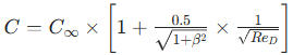 (C∞為無限雷諾數(shù)下的流出系數(shù),ReD為管道雷諾數(shù))。