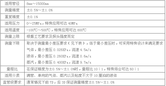 1、威力巴流量測量系統(tǒng)性能指標